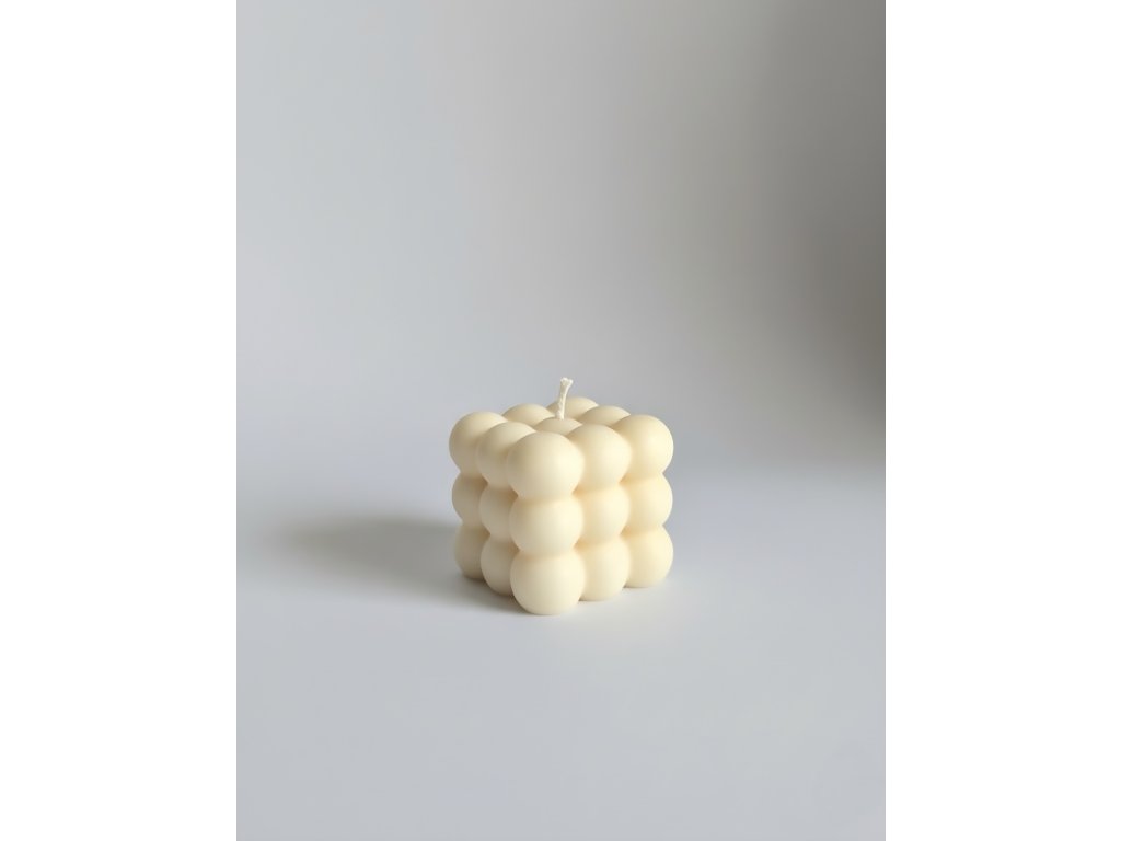 Hravý design s nádechem elegance. Svíčka „Bubble“ přináší jedinečný geometrický vzhled inspirovaný moderním minimalismem. Její ikonický kostkový tvar s jemnými bublinkami dodává prostor styl a originalitu.