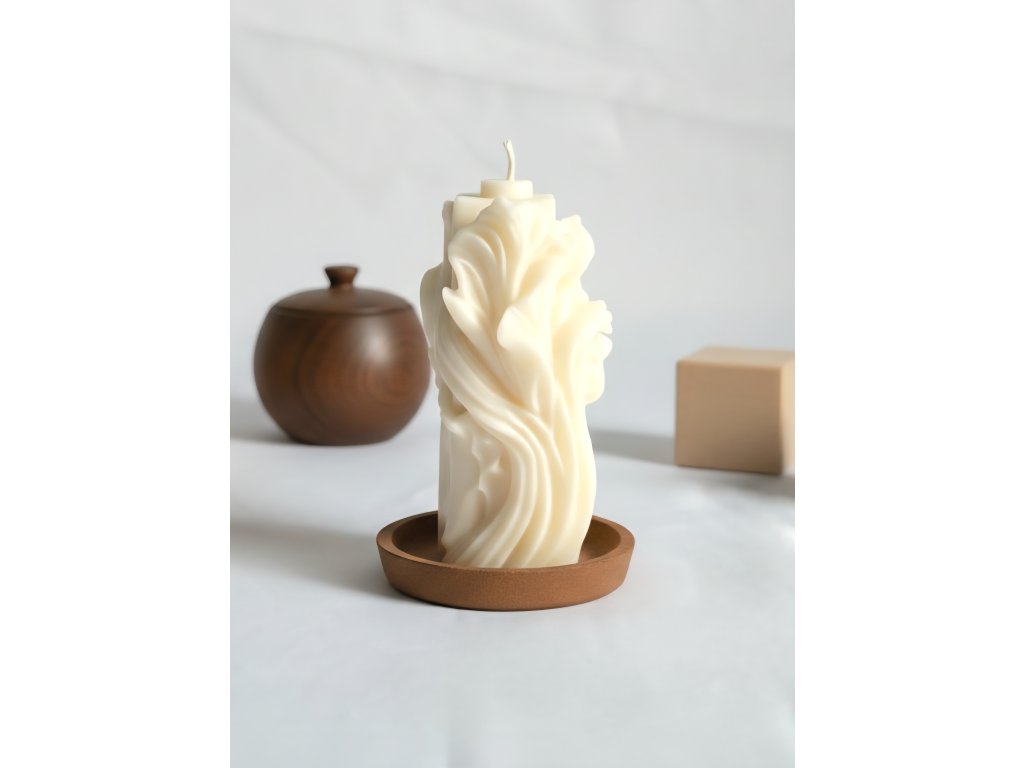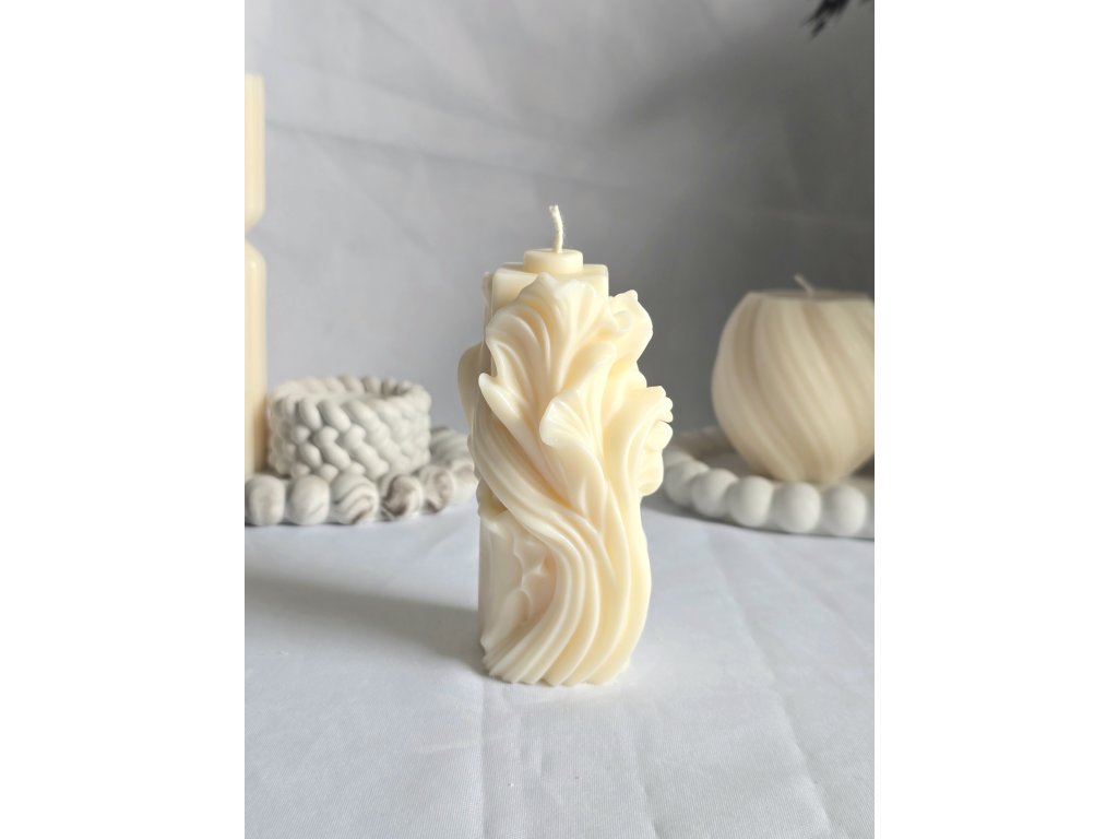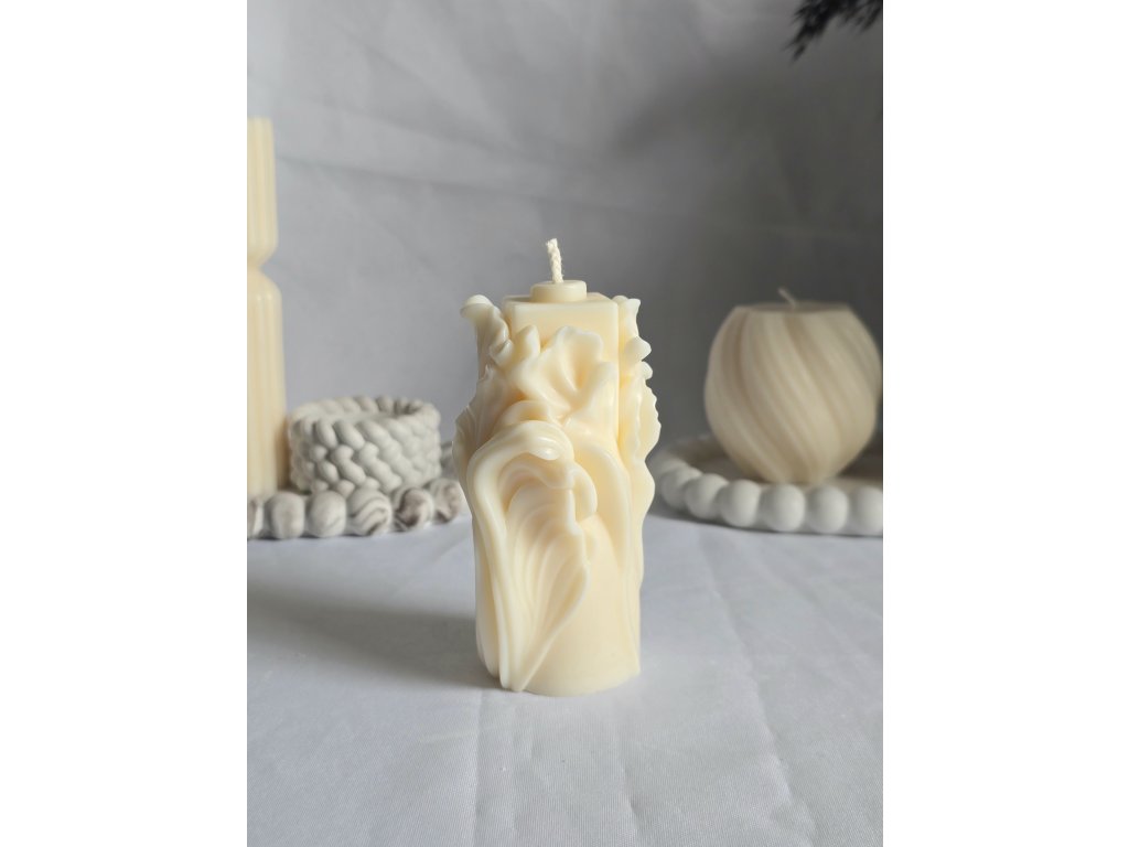Elegantní designová svíčka s jemnými detaily, které připomínají sochařský tvarovaný vosk. Svým tvarem i zpracováním působí jako malý umělecký objekt – decentní doplněk interiéru, který zaujme svou čistotou a nadčasovostí.