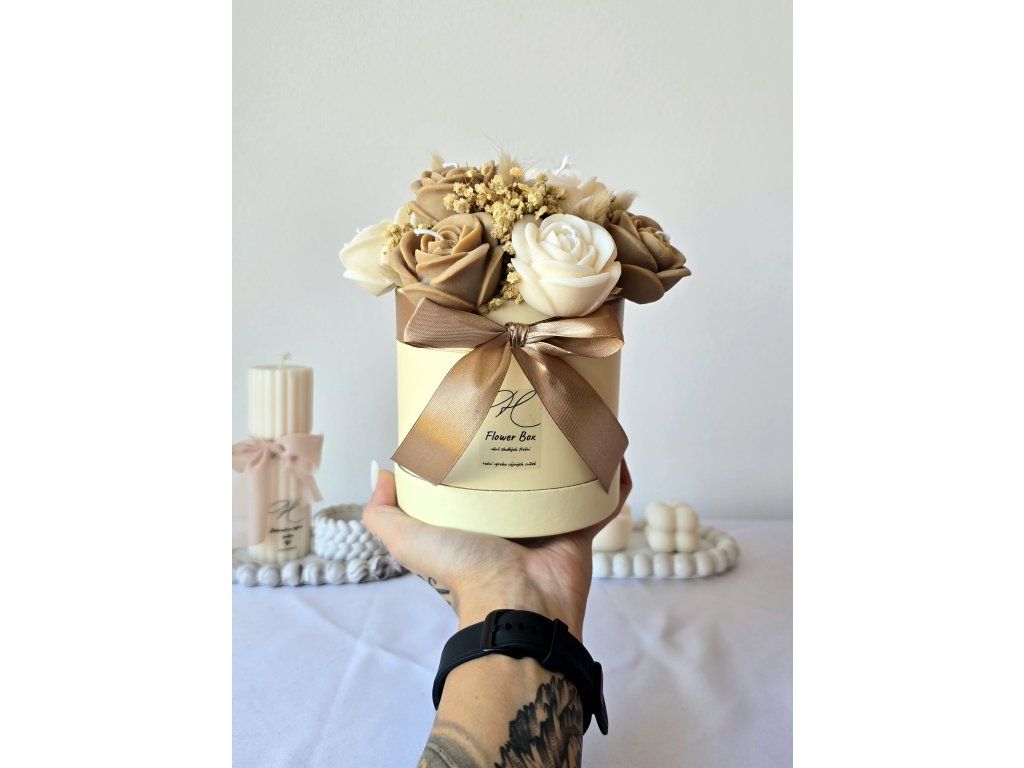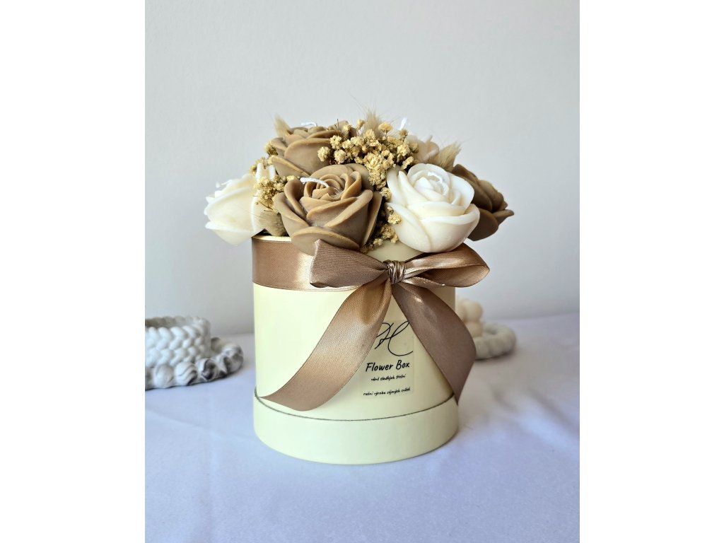 Luxusní flower box ze sójového vosku v elegantním provedení s jemnou mašlí. Dokonalý dárek, který spojuje krásu květin s kouzlem svíček. Sytost barvy produktu se může lehce lišit s ohledem na světlo v ateliéru nebo rozlišení Vašeho zařízení.