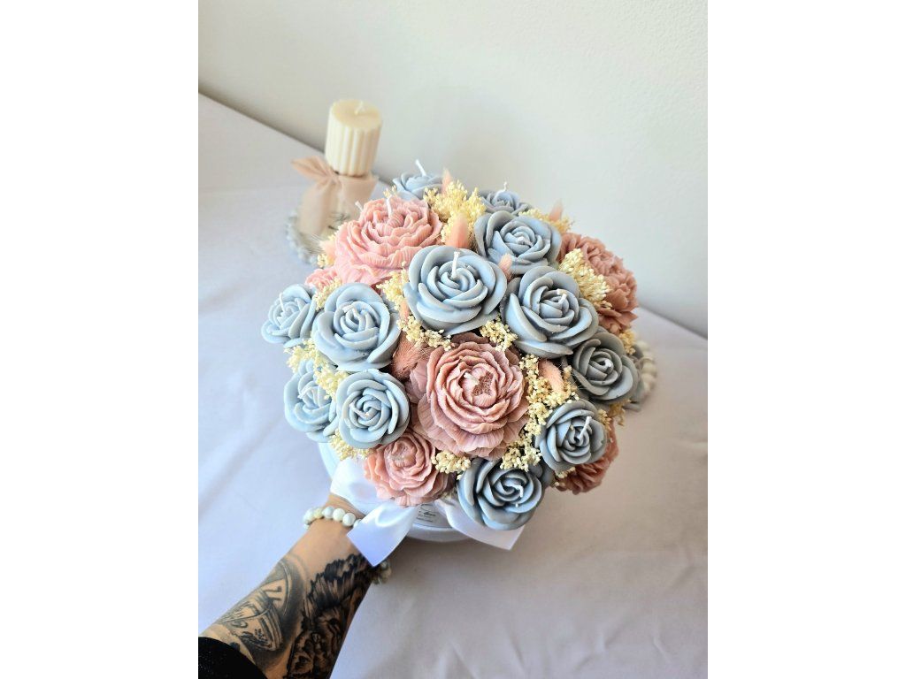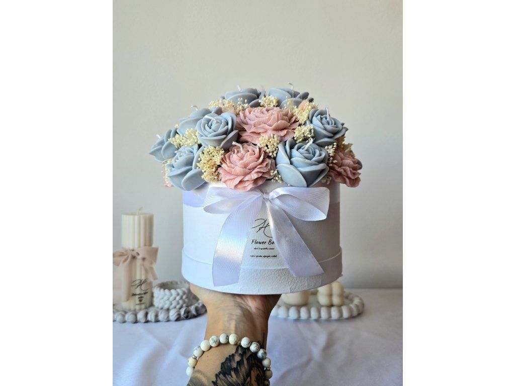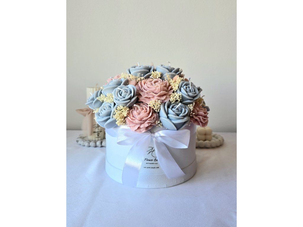 Luxusní flower box ze sójového vosku v elegantním provedení s jemnou mašlí. Dokonalý dárek, který spojuje krásu květin s kouzlem svíček. Sytost barvy produktu se může lehce lišit s ohledem na světlo v ateliéru nebo rozlišení Vašeho zařízení.