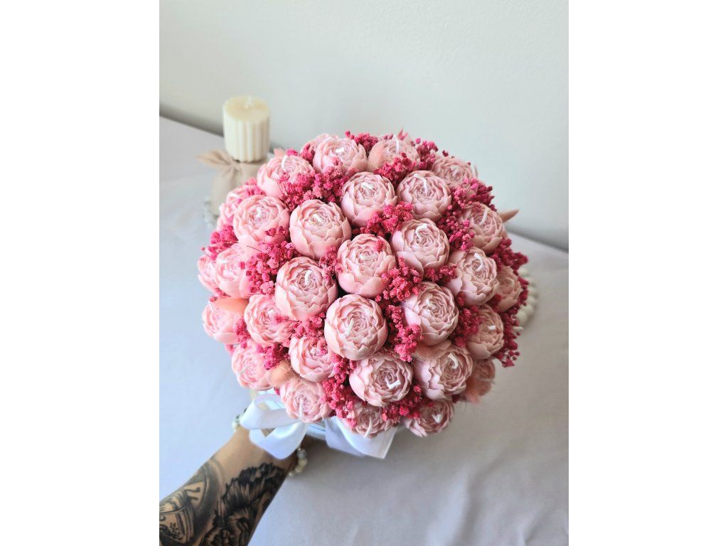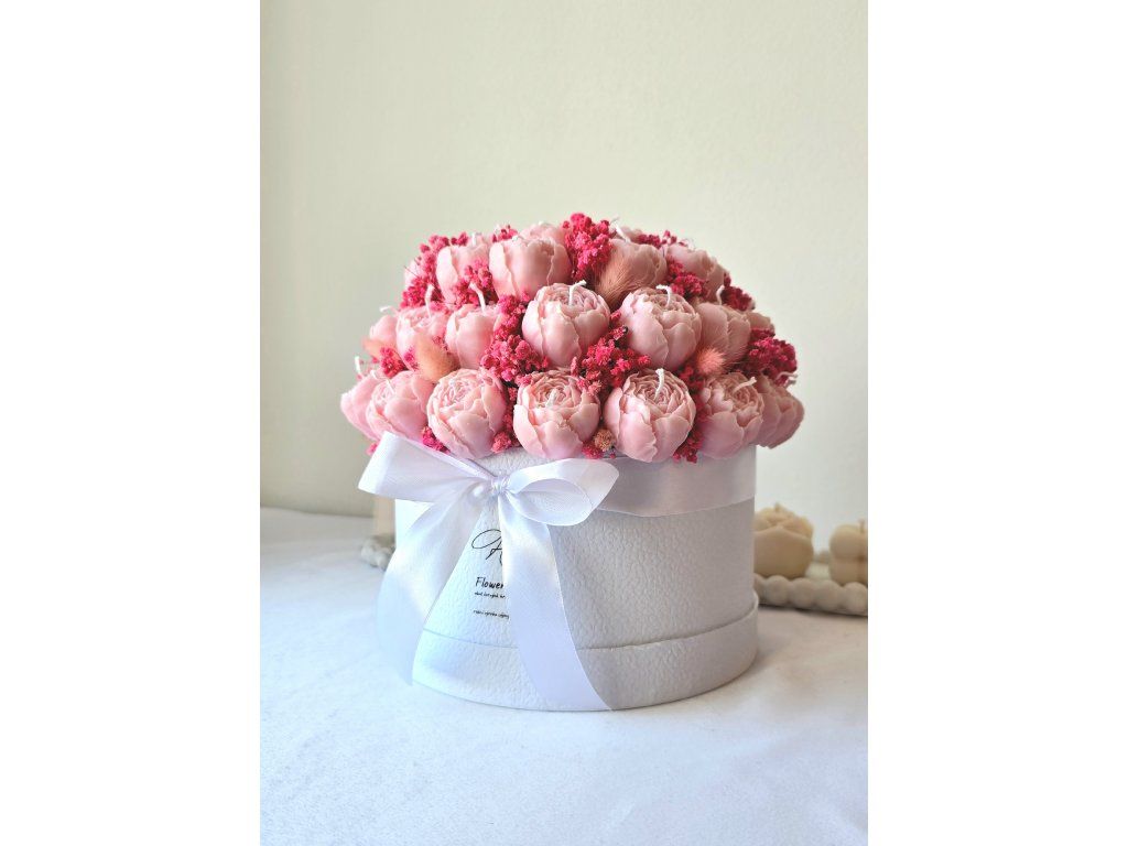 Luxusní flower box ze sójového vosku v elegantním provedení s jemnou mašlí. Dokonalý dárek, který spojuje krásu květin s kouzlem svíček. Sytost barvy produktu se může lehce lišit s ohledem na světlo v ateliéru nebo rozlišení Vašeho zařízení.