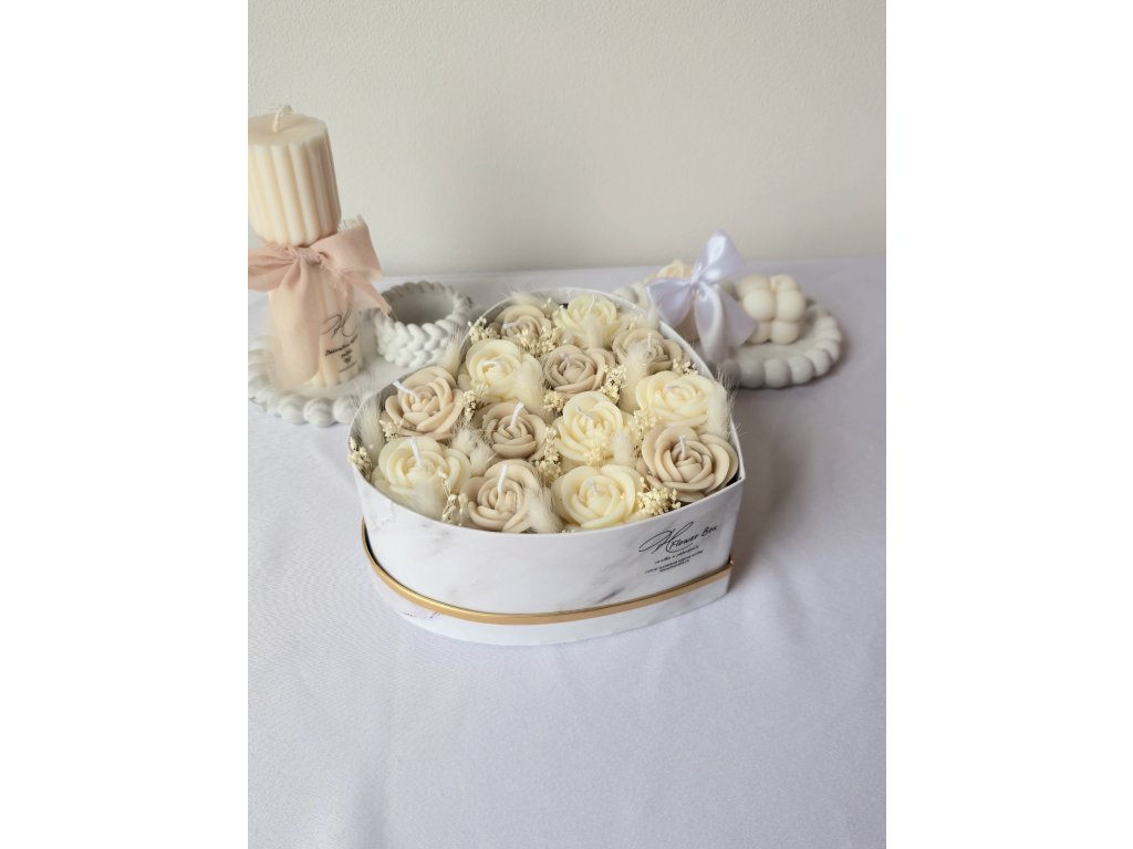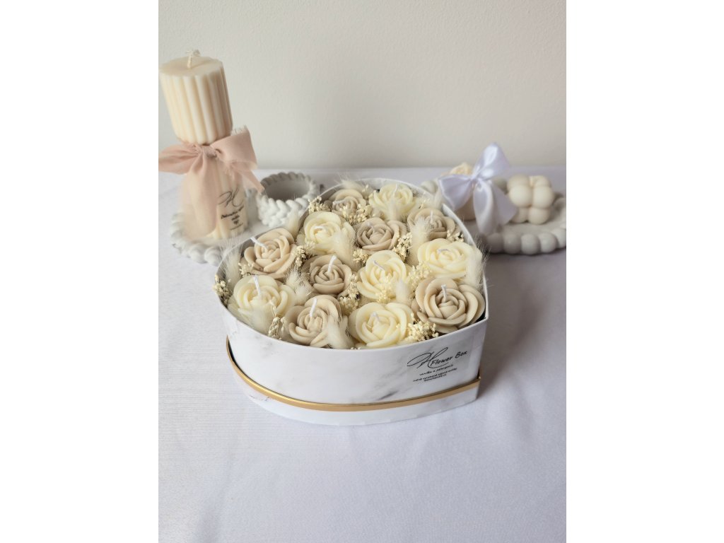 Luxusní flower box ze sójového vosku v elegantním provedení s jemnou mašlí. Dokonalý dárek, který spojuje krásu květin s kouzlem svíček.