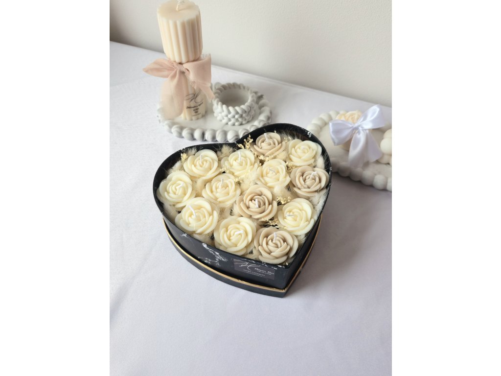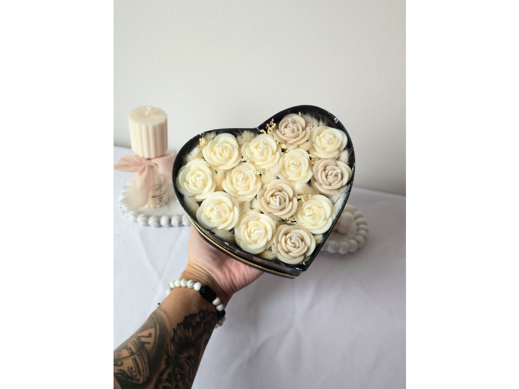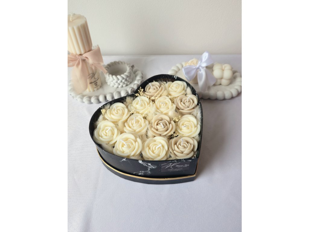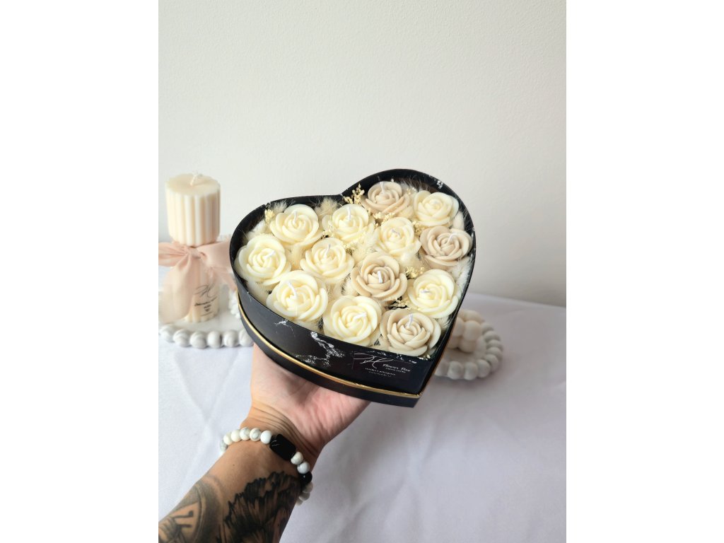 Luxusní flower box ze sójového vosku v elegantním provedení s jemnou mašlí. Dokonalý dárek, který spojuje krásu květin s kouzlem svíček.