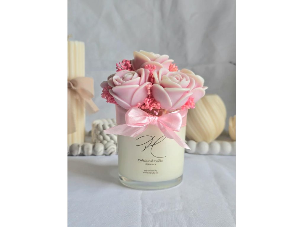 Elegantní květinová svíčka, která spojuje krásu dekorace a jemnost vůně domova. Ručně odlévaná ze 100% sójového vosku, zdobená květy rovněž vytvořenými ze sójového vosku. Každý detail je pečlivě propracovaný, díky čemuž působí jako luxusní flower box – avšak ukrytý ve skle a doplněný o svíčku.