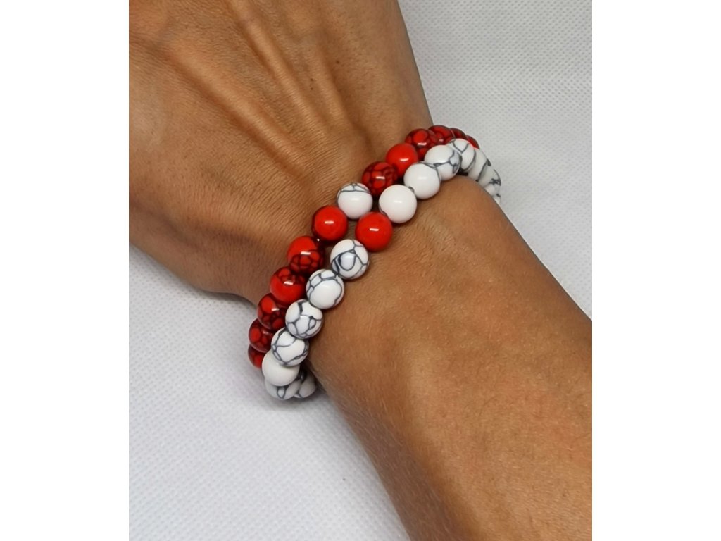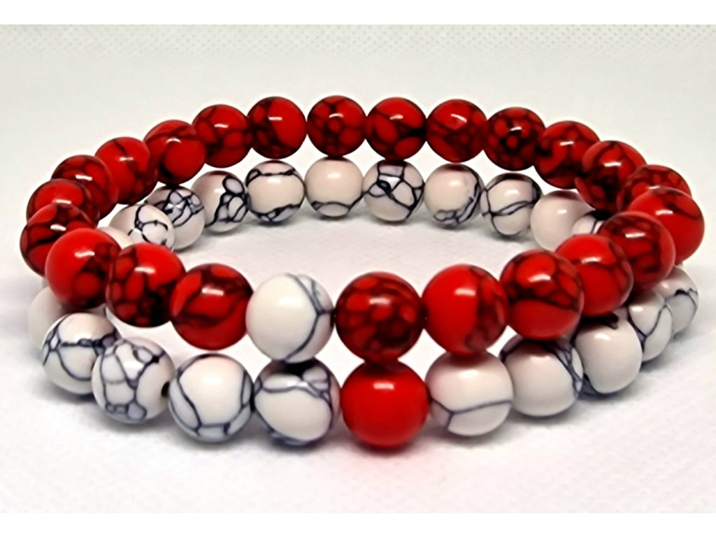 Sada náramků z červených a bílých korálků