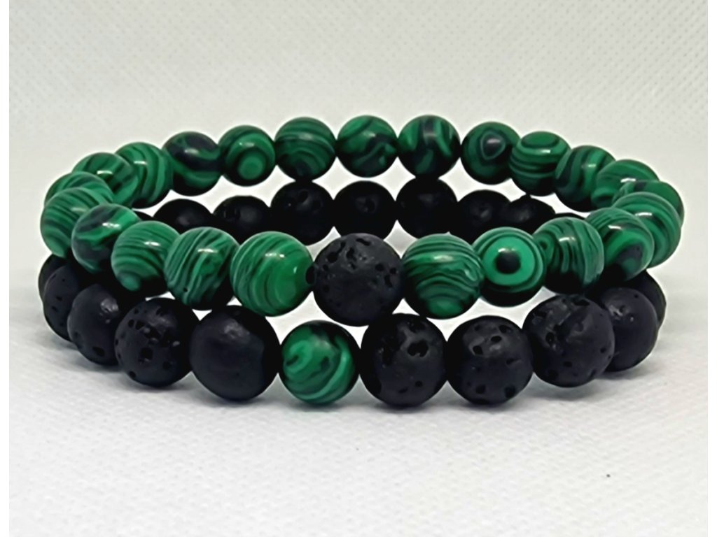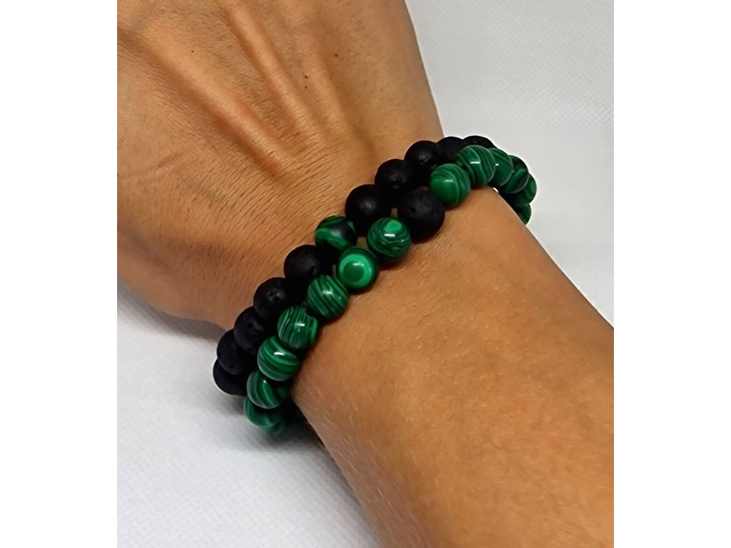 Stylová sada dvou pružných náramků z korálků v moderní barevné kombinaci. Náramky jsou navlečené na elastické gumičce, takže se snadno nasazují a přizpůsobí většině zápěstí.