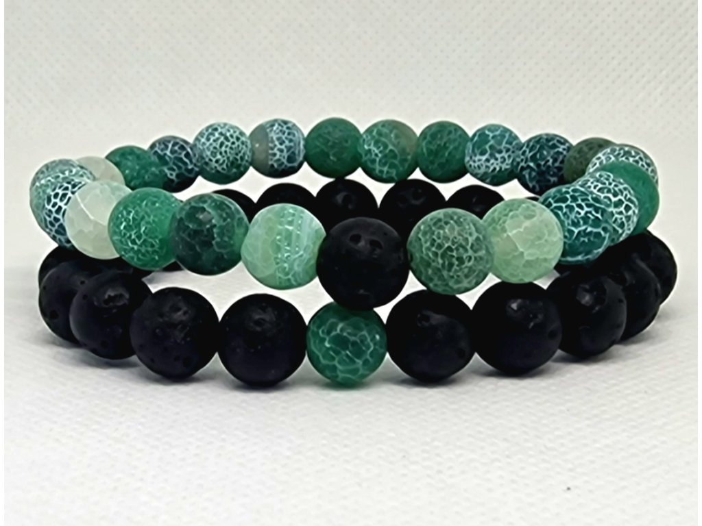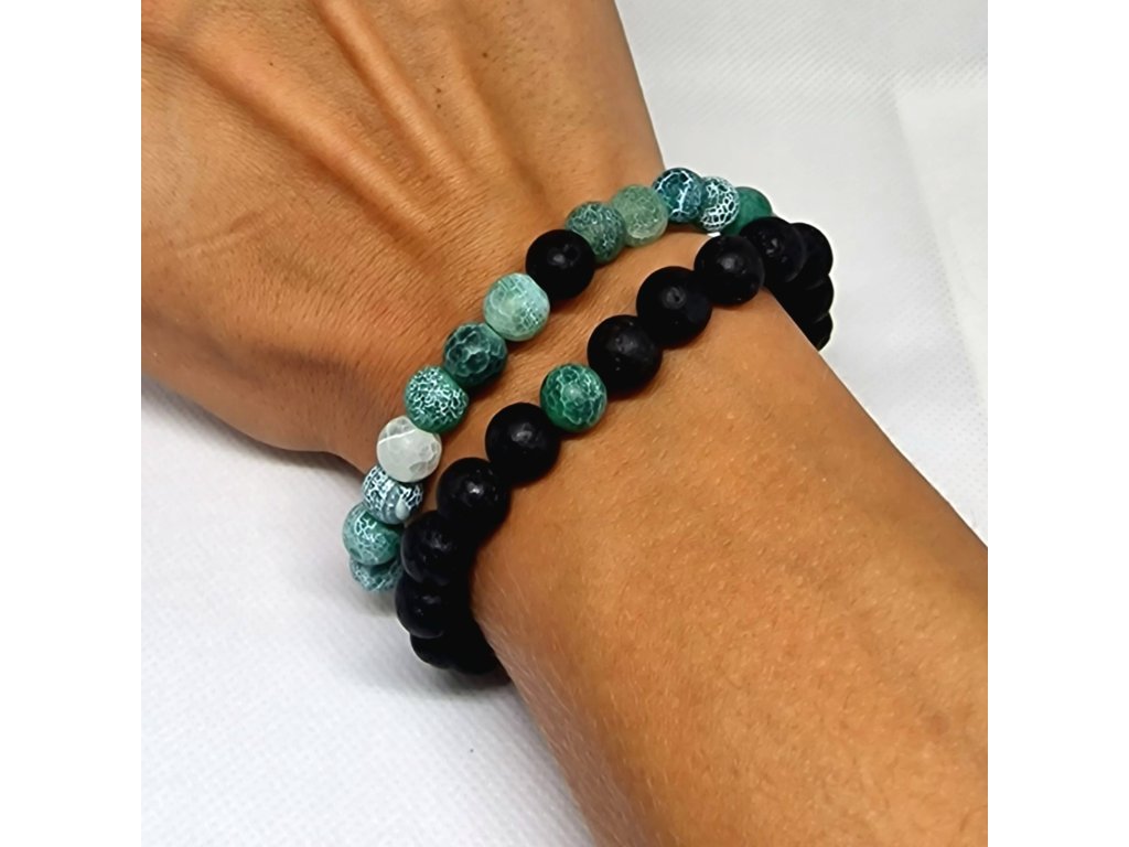 Sada náramků z tyrkysově zelených a černých korálků