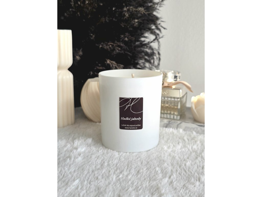 Sladká jahoda - Objem: 300 ml | Váha vosku: cca 230 g | Celková váha: cca 540 g