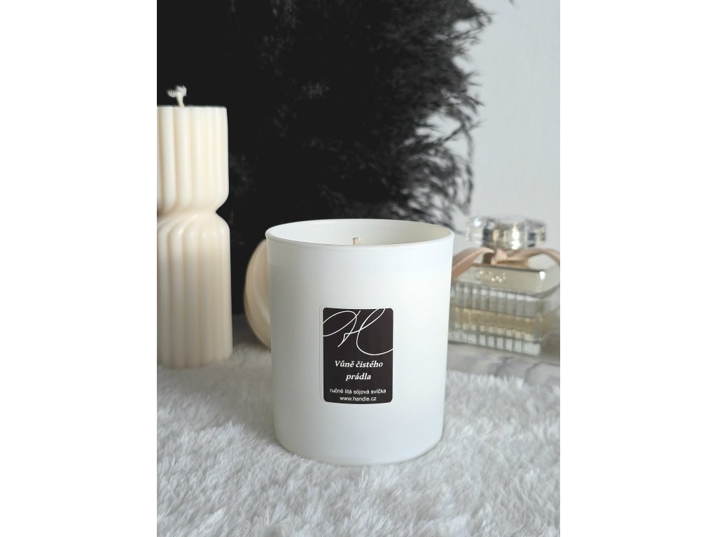 Vůně čistého prádla - Objem: 300 ml | Váha vosku: cca 230 g | Celková váha: cca 540 g